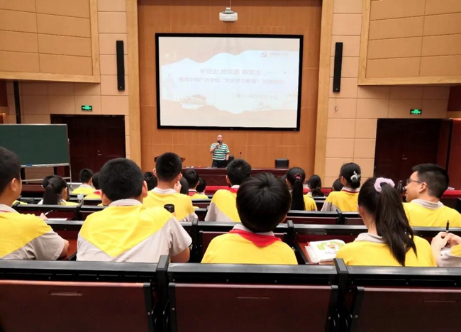 黎强书记以“学党史、感党恩、跟党走”为思政课题,通过详实有致的课程内容、引人入胜的故事讲述,帮助现场学生领略党的百年光辉历程。