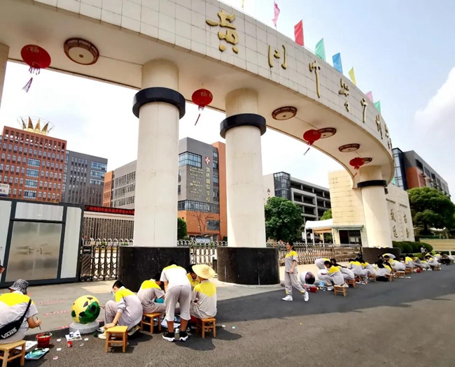 以学校负责绘画艺术教学的导师为首,由一众对色彩、线条独具天赋的“学生画师”加入而成的黄广艺术先锋队,迅速在校门处集结,大家“有备而来”——创意图案已完成前期最终设计,各种颜料画具已提前配套备齐,面对因暗淡无光而倍显“无精打采”的一座座小石墩,黄广艺术先锋队的每一员摩拳擦掌、跃跃欲试。