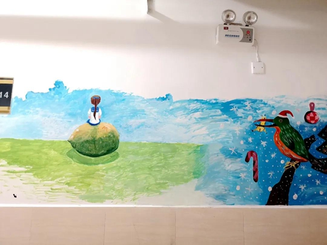 清新脱俗,吸引一位位经过或等候的家长路人驻足欣赏。