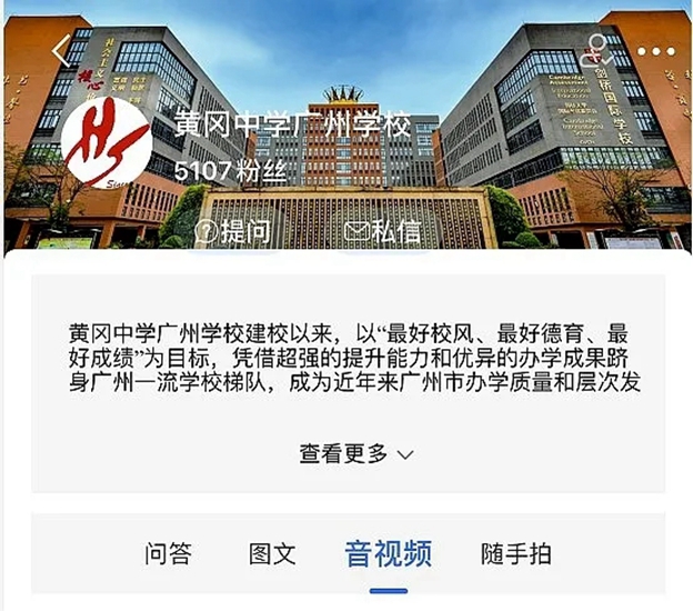 (6)点击广州市黄广中学/b>,进入学校页面,学生和家长可在学校页面上方选择“提问”和“私信”进行互动,此时需进行简单注册(注册时请务必修改昵称)。