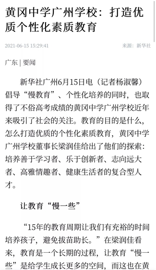 6月15日,新华社记者深入采访了黄广中学广州教育集团/广州市黄广中学。