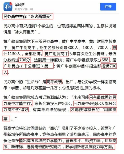【黄广集团高中为啥“火”出“圈”?】羊城晚报:广州民办高中今年招生“冰火两重天”