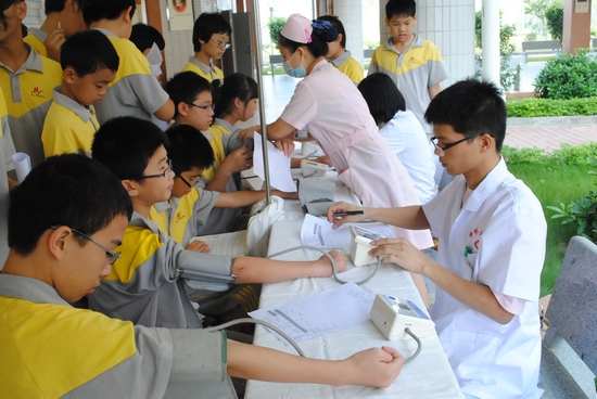 为了保证全校学生和教职员工的身体健康,预防疾病,构建和谐校园。10月23日至25日,校工会联系了花都区第二人民医院于为学校2000名师生进行了健康体检,体检包括身高、体重、血压、血常规、肝功、心电图、胸透、B超等各项常规检查。在现场体检中,医务人员对每个师生进行了认真细致地检查,对检查的结果作了详细记录,同时还向一些师生提出了有针对性的合理保健意见,引导师生养成良好的卫生习惯,对常见疾病的预防控制起到了积极的促进作用。 此次体检是学校工会为我校师生谋福利的又一件实事。它使得学校的师生身体健康又多了层保障、多了一层关爱。