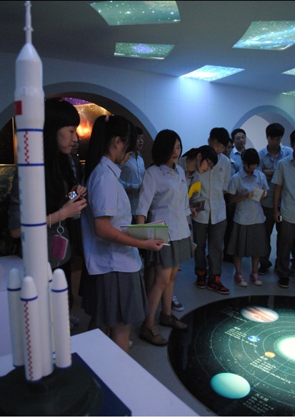 10月22日,我校组织国际部高一全体学生到花都气象观测站参观学习,丰富学生的课外知识。 同学们在气象站专业讲师的带领下,兴奋地走进期待已久的花都气象观测站。一进院门,迎面就是室外气象广场,它的设计灵感来自于中国古代圭表,巧妙利用建筑物柱子正午的日影长度准确看出节令。 一楼大厅的立体沙盘为我们全方位展示了花都地理分布。最有意思的是气象科普厅,从了解气象观测发展的历史文化开始,再经雷电通道、模拟天气预报、热岛效应等体验区个个精彩纷呈。而“怒发冲冠”、“数字星球”区域则形象的为我们诠释了气象与科技的发展。 最后讲师神秘的将我们带到顶楼,带我们领略镇馆之宝——天文望远镜。天文望远镜的出现,给人类戴上了“太空眼”,使人类探索宇宙无尽奥秘成为可能。 短短两个小时,我们学习到了很多气象、天文领域的知识,每个同学获益匪浅,深刻感受到人类科技发展的快速,以及人类智慧的深邃。作为祖国的下一代,我们必须付诸努力,未来才能创造出更好的科技。