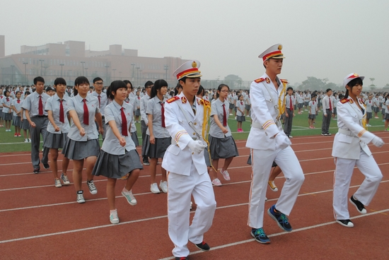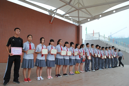 10月15日周一,广州市黄广中学仪式,全校师生和五星红旗一起见证了另一个庄严的时刻——我校新老国旗班交接仪式。 早晨6时50分,在我校田径场,首届国旗班队员把鲜红的五星红旗交到了新国旗班队员手中,新国旗班全体队员以标准而规范的动作完成了首次升国旗任务,同时也预示了新一届国旗班即将继往开来,把国旗班的光荣事业发扬光大,将国旗班的伟大精神薪火相传!接着,敖道威同学代表新国旗班队员发言。他表示,参加国旗班升旗使自己陶冶了爱国主义情操,受到了终身难忘的教育。这是一项无上光荣的使命,大家一定要像爱惜自己的生命一样去爱惜国旗,将升旗进行到底。 最后,校团委熊建新书记讲话,他说,我校首届国旗班从组建以来,已经走过了1年多的时间。在指导老师余绍青老师的带领下,队员们不畏酷暑严寒,勇于奉献,刻苦训练,以一颗赤诚之心守护着国旗,以严谨认真的态度完成着每一次任务,得到了全校师生的一致好评。新一届的国旗班走上了工作岗位,在此也希望新队员们能够继承和发扬国旗班的优良传统和作风,牢记自己的责任和使命,认真履行工作职责,不辜负学校领导、老师和同学们的期望,以更加出色的表现和更加优异的成绩来完成学校交给的各项任务。之后宣布了新一届国旗班队员名单并为首届国旗班队员和指导老师颁发荣誉证书。