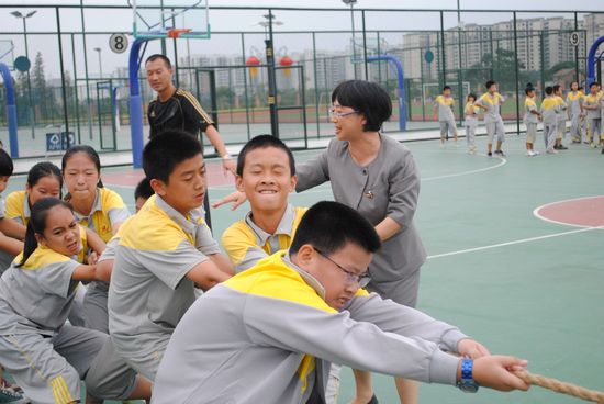 2012年9月25日广州市黄广中学赛。本次比赛共有16个班参加,以淘汰制方式进行比赛,各班选出十名男生十名女生参赛,分别以三局两胜决定胜负。在比赛中学校德育处、教务处、艺体发展处、年级组积极组织,公平、公正裁判。比赛场上同学们活力四射,氛围热烈,赛场上队员们以饱满的热情全身心的投入到比赛中,场外同学和老师们欢呼、加油。经过一节课的紧张激烈的比赛,依次决出前八名进入星期五的半决赛,赛后学校将对获奖班级给予奖励。 本次拔河比赛,使七年级广大同学在比赛中增强了班集体的凝聚力、亲和力,促进了同学们之间的友情,使大家真正的体会到团结的力量。