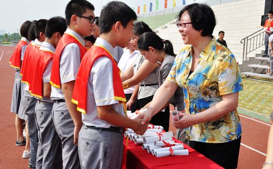 在过去的一年里,全校师生共同努力,创建了我校具有强大影响力的优秀校风和学风。全校学生“四个好习惯”逐步养成,学习成绩不断提高,个性特长健康发展,正能量得到较充分焕发,校园中涌现出了一大批各方面表现突出的优秀学生。本次大会上,学校对7个先进班集体,以及各个方面各个领域优秀学生651人次进行了隆重表彰。 本次大会更大的亮点是,学校根据学生上一学年的学业成绩和综合表现,拿出400多万元的巨额奖学金,奖励品学兼优的学生。获奖学生314名,其中初中八年级获奖面高达50%。获奖者分别获得奖学金3.5万、1.75万、1.3万和1万元。相信如此大范围、大数额的奖学金,一定能够点燃全体学生的学习热情,激励同学们争取更大的进步。