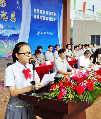 厚爱、肯定、赞许,领导们亲切讲话、殷殷期盼! 真诚、博爱、鼓励,老师们情真嘱托、浓浓爱意! 兴奋、熟练、整齐,同学们身着盛装,勃勃生机!