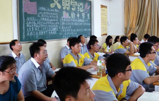 圆玄中学客人来访,拉开我校新学期语文校际交流的序幕。 2012年9月14日,花都区圆玄中学高一语文组一行5人,在该校骆主任率领下来我校开展语文课堂教学专题研讨活动。我校高中语文组李亚征老师执讲的《我与地坛》一课,得到了两校听课领导和老师的一致好评。圆玄中学的骆主任、万老师以及我校的周晓老师、曹月老师等,对李老师的课进行多角度的点评,大家一致认为,李老师的课,目标明确,设计新颖,环环相扣,务实扎实;教学语言纯粹,板书清晰精美,注重学法指导;尤其是教师教学中的激情和才情,对学生有着很好的熏陶和感染作用。双方还就教学中的诸多话题,进行了广泛的交流,达成了增进交往、加强融合方面的共识。 我校陈明星副校长、孙传华主任及有关教师全程参与了此次活动,陈校长对本次活动给予高度评价,同时希望两校多加联系,共同提高,努力开创两校交流与合作美好的未来。