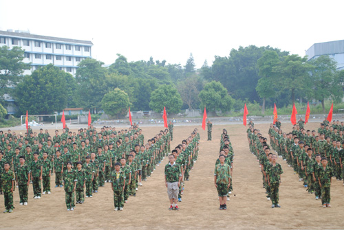 八月盛夏,飞火流金。2012年8月30日上午,我校2012级初中一年级、高中一年级新生军训结营典礼在广州军区75774部队训练基地运动场隆重举行,江楚桥副校长、校长助理范小梁以及训练基地张队长和教官出席了大会,我校各班班主任也一同出席。 大会在庄严的国歌中拉开序幕,首先江楚桥副校长在军训基地张队长的带领下检阅了各连。 接着,860多名新同学共分为十八个连队,各连队迈着矫健的步伐,进入会场,同学们精神饱满,队列整齐威武,口号铿锵有力,出色的表演赢得了满场喝彩。其中,由两个连队组成的方队所进行的军体拳表演更是赢得了现场观众阵阵热烈的掌声,充分展示了黄广学子良好的精神风貌。 随后,广州军区75774部队张队长宣读了关于广州市黄广中学12级新生军训表彰决定,有一百多位同学获得“军训标兵”称号,八个班级获得“军训优秀班集体”的称号。在颁奖仪式上,领导们为获奖个人和集体颁奖。 结营典礼在江楚桥副校长的讲话中落下帷幕。他对为期5天的军训所取得的成果给予了充分肯定,并对2012级新生在以后的学习生活提出了殷切的希望,对为保障军训顺利进行付出辛勤劳动的训练基地的教官及学校的各位班主任老师表示衷心的感谢。他希望全校新生要向获得荣誉的团队及个人学习,继续发扬军队作风正派,纪律严明的优良传统,自强不息、艰苦奋斗。希望同学们勇于锻炼,甘于吃苦,继承军人敢打敢拼的良好作风,在今后的学习中奋发进取,争创佳绩。会上,江楚桥副校长代表学校向部队赠送了锦旗。 本次军训时间短、任务重、科目繁多,不仅包括基本军事技能训练,还包括国防知识教育、防震紧急疏散演练、行为规范教育等内容。 军训是广州市黄广中学,是特殊的一段经历,是最有纪律、最有效率、最有激情的一段,因为军营的绿色感染着每个人,它是军人的灵魂,它是生命力的代名词。军训是人生最生动的一课,它能教会我们坚强和不轻言放弃。