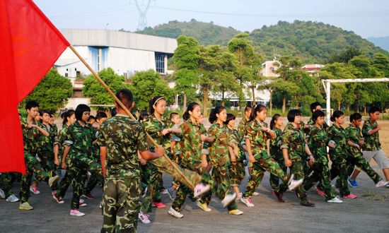 8月28日,是本次军训的第三天。经过前两天训练,同学们渐渐开始适应了令行禁止、迅速整齐的军营生活。在阵阵凉爽的晨风中,五星红旗冉冉升起。迎着朝阳,同学们在教官的指导下开始了新一天的训练。 除了重复着昨日学习的军姿、稍息、立正基本练习外,今天同学们在教官的带领下,开始学习正步走的动作要领,掌握正步走的技巧。教官把动作分解成若干步骤,每个动作都以身示范,“拳心朝内,脚尖绷直,抬头,挺胸,脚掌离地”一个个动作细节,同学们都认真地执行,他们用力的甩动臂膀,踏响脚步,努力走出正步走的气势。 经过这几天的训练,同学们一切行动听指挥,动作整齐,意志坚定,情绪激昂;任凭汗水一次次湿透衣衫,烈日肆虐,同学们依然精神抖擞,斗志昂扬,用实际行动向老师们证明自己已经成为了一名合格的小军人;同学们的脸上少了一份稚气,多了一份英气。他们精神状态饱满,信心坚定,“流血流汗不流泪,掉皮掉肉不掉队”的顽强精神在他们身上得到淋漓尽致的展现,他们将创造黄广人的辉煌!
