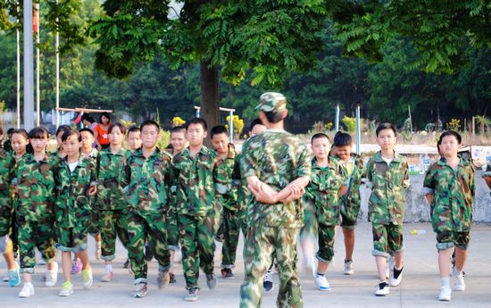 大概大自然也是想试探学子们顽强的意志品质,虽已入秋多日,天气并没有因为秋天的到来而凉爽少许,军训场上仍然是烈日炎炎,热浪滚滚。尽管如此,军训场上,800多名初一、高一新同学们仍以饱满的热情、顽强的斗志严格的进行着训练。 经过了前几天的训练,同学们基本上都已经开始掌握各项动作要领,由起初的步伐懒散到现在的铿锵有力;由开始的怕苦怕累到现在的斗志激昂。头顶烈日,汗水不断顺着眉宇、脸颊流下,坚持,再坚持:忍耐,再忍耐。坚忍不拔的精神在时间中累积,刚毅的品格在磨练中塑造。 烈日下黝黑的笑脸是训练场上最具特色的风景线,军训让同学们品尝到生活的不易,读懂了坚毅的内涵。许多新生均表示,再苦再累也要咬牙挺住,绝不能让自己拖了集体的后腿。“短暂的军训,是踏进广州市黄广中学重要的一课,军训将是对自己身体素质和坚毅的一场考验,无论如何,自己都会坚持住的。”一名新同学信心十足地说。