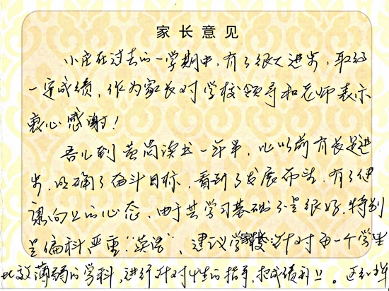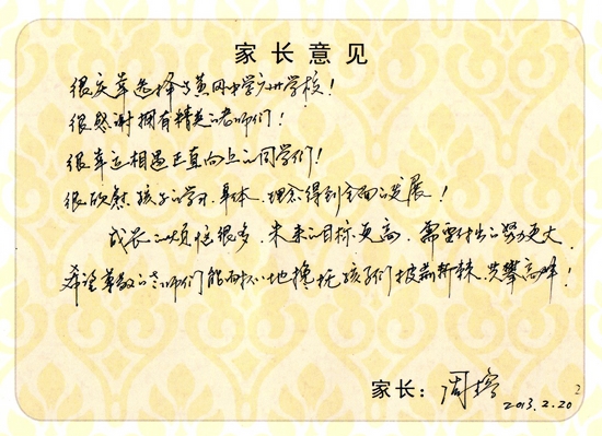 编者按:学校招办的同事们发现,越来越多的家长来电反映,他们听在黄广上学的亲朋好友介绍学校非常好,故而很感兴趣的咨询招生详情。孩子们在这里上学都有哪些变化呢?我们来看看寒假家长在学生素质报告单中的反馈。