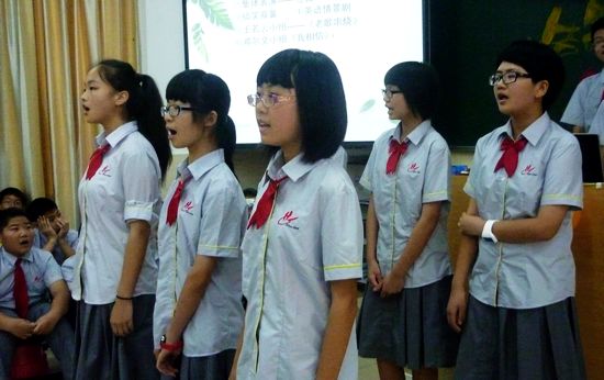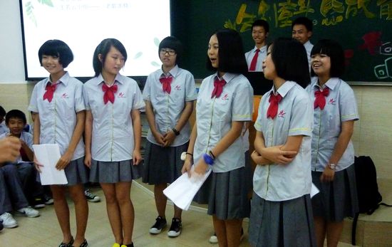 2012年6月1日,又是一年一度的儿童节,对于七(4)班的同学们来说,这是一个有着特殊意味的儿童节,这既是我们跨入广州市黄广中学,也是我们作为儿童最后一个自己的节日。过了今天,我们就真正告别了童年,走上青春的征途。 在这样一个特别的日子里,我们七(4)班隆重举办了以“告别童年,怒放青春”为主题的家长会, 我们全班同学为这场家长会做了充分的准备。王奎举、郭逸鹏两位同学制作了幻灯片,王若云、蔡耀阳、邓玮瑨、袁卓男、赖洁雯、刘善诚六位小主持人亲自写了串词,同学们还精心准备了许多节目,都是为了迎接这一刻的到来。 家长会于下午3点正式开始,首先是由蔡耀阳,王若云两位同学主持的第一环节:“告别童年,温馨回忆”。我们用幻灯片向家长们展示同学们的个人主页。每个同学的个人主页上,都有三个基本内容:自己童年时期的照片、身着广州市黄广中学发自内心的“凡人小语”。不同的风采、不同的精神,散发出来的却是同样耀眼的光芒。同学们看着自己的过去、现在,读着自己的心声,不禁感叹:不经意中我已经长大,现在的我已经不小了! 紧接着,在击鼓传花这一刺激又有意思的游戏中,李志林和邓尔文同学向同学和家长公开了自己写给家长的信,将自己对家长的浓浓的爱表达出来。温馨的气氛,瞬间笼罩整个教室,温暖着所有人的心。 《让我们荡起双桨》、《鲁冰花》、《童年》三首儿歌相继被同学和家长们唱响。那些曾经陪伴我们,萦绕耳畔的儿歌,带着我们回到了灿烂的童年时光。 在激昂高亢的朗诵《少年中国说》后,第一环节落下了帷幕。我们走出了对童年的美好回忆,进入了由邓玮瑨和袁卓男主持的第二环节:“怒放青春——校园生活展示”。 “我为同学找优点”的活动开始了,每个同学都站起身来大声说出自己为同桌找到的优点,互相鼓励,互相表扬。每一个人的身上都有许许多多的优点,如同星光,光彩夺目。 紧随其后的环节是文艺表演,我们全班42个同学分8个小组表演了各式各样的节目。每个人都在这小小的舞台上展示自己的风采,无一例外。马启天小组的小品《警匪故事》,集体表演竖笛吹奏《沧海一声笑》,徐琪茹小组的搞笑双簧,英语情景剧《白雪公主》,王若云小组的老歌串烧,邓尔文小组的《我相信》,太极扇表演《中国功夫》,邓玮瑨小组的小品《招演员》,区小庄小组的朗诵《将进酒》,压轴的当然是全体同学用豪迈的热情唱响我们的校歌《怒放的生命》……一个个节目表演得淋漓尽致,赢得了观众们热烈的掌声。 激昂的校歌过后,便进入了由刘善诚、赖洁雯两位同学主持的第三环节:“青春飞扬,放飞梦想”。学生代表黄炯略同学和赖洁雯同学发表了慷慨激昂的演讲,向家长们阐述了我们的班级风貌以及校园生活。然后是家长代表王若云和沈婧玮两位同学的家长发表讲话,他们的致辞表达了家长们对我们的心声以及殷切希望。班主任殷老师的演讲,对我们一年来表现给予了充分的肯定和赞扬,并为我们的发展指明了方向目标。校长寄语给了我们力量和信心,鼓励我们展翅翱翔。在老师、同学、家长、校长的共同期望中,我们全体起立,以青春的名义庄严宣誓。 温馨而感人的集体生日会终于到了,我们点燃了手中的蜡烛,在区小庄同学用巧克力写上“告别童年”四个字后,我们纷纷将蜡烛插到了蛋糕上。此时此刻,我们也种下希望,播下了理想,我们将会努力追逐明天的太阳。 吃完蛋糕后,全场人员气声歌唱《明天会更好》,在这首歌中,我们彼此祝福,期待明天会更好,我们相信明天会更好。